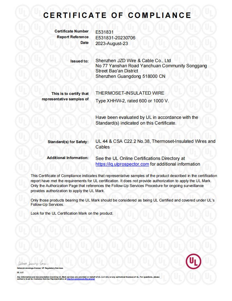 對于進口商、承包商和工程師而言,合規性不容妥協。JZD電纜的XHHW-2電線經過嚴格測試,確保符合以下標準:
