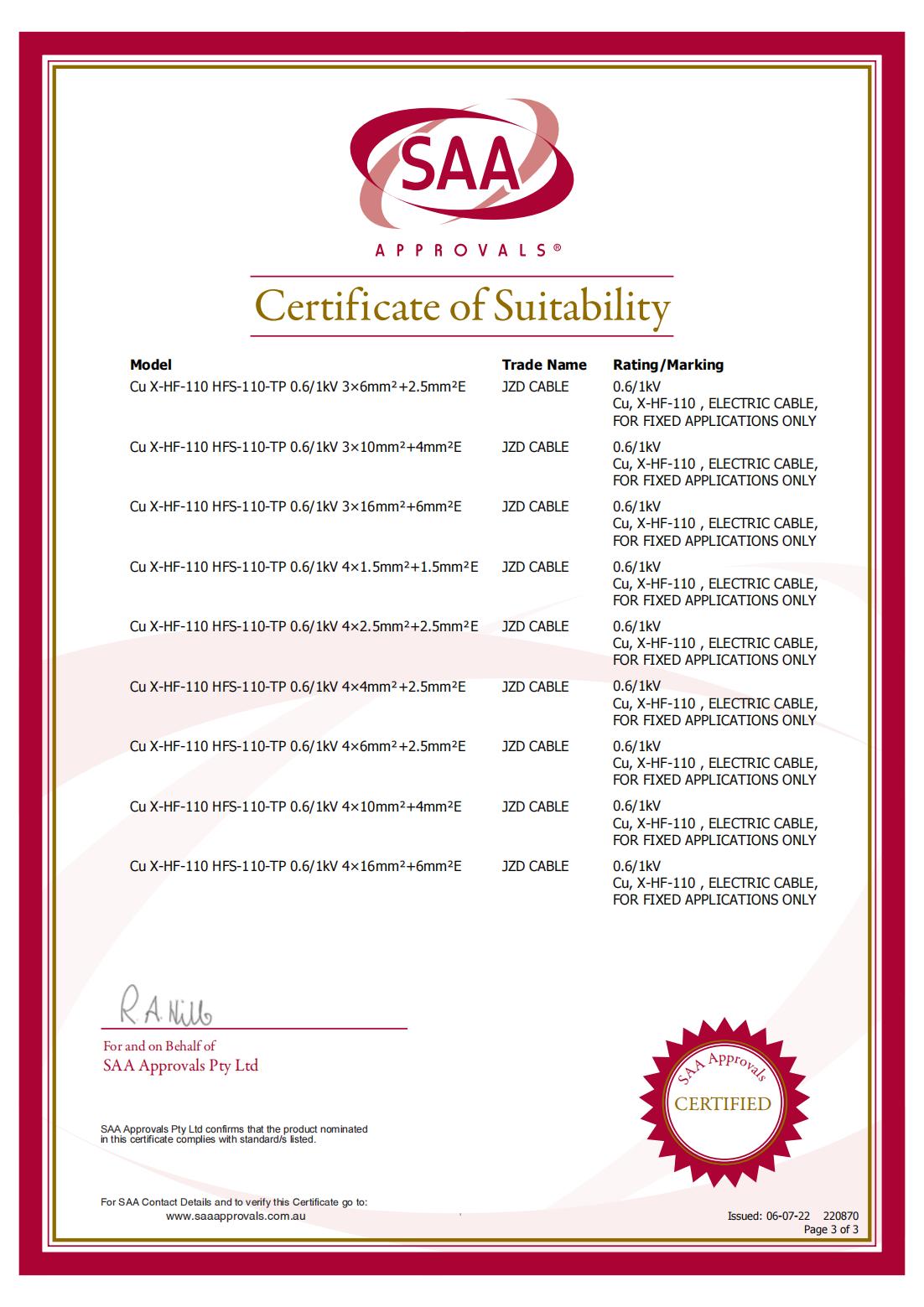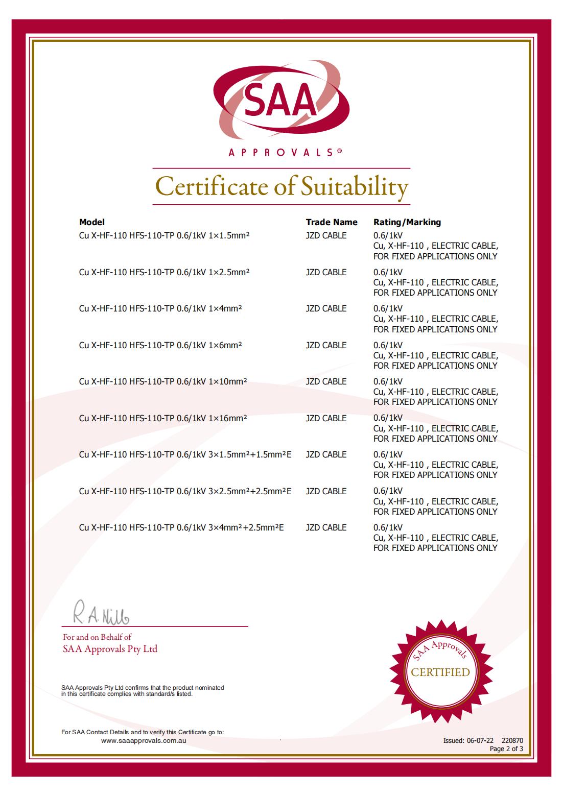 SAA-H05VV-F-RVV資質證書